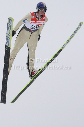: Thomas Morgenstern of Austria soars through the air during ski jumping race on HS106 hill on FIS Nordic skiing World championships in Oslo, Norway. Ski jumping race on HS106 hill of FIS Nordic skiing World championships was held on Holmenkollen above Oslo, Norway, on Saturday, 26th of February 2011.