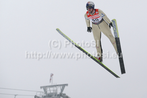 Oslo ,Norway - 26.02.2011 : Thomas Morgenstern of Austria soars through the air during ski jumping race on HS106 hill on FIS Nordic skiing World championships in Oslo, Norway. Ski jumping race on HS106 hill of FIS Nordic skiing World championships was held on Holmenkollen above Oslo, Norway, on Saturday, 26th of February 2011. Photo by: Tomasz Jastrzebowski / PhotoSI