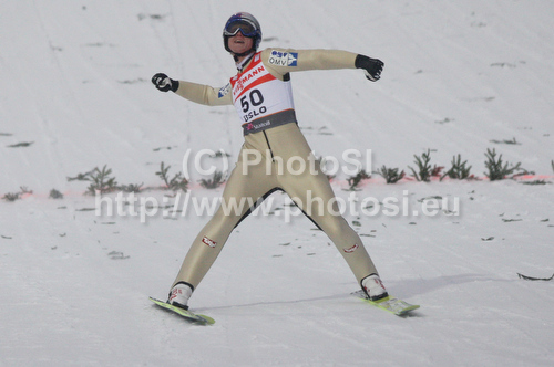 Oslo ,Norway - 26.02.2011 : Thomas Morgenstern of Austria lands in ski jumping race on HS106 hill on FIS Nordic skiing World championships in Oslo, Norway. Ski jumping race on HS106 hill of FIS Nordic skiing World championships was held on Holmenkollen above Oslo, Norway, on Saturday, 26th of February 2011. Photo by: Tomasz Jastrzebowski / PhotoSI