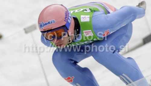 Planica ,Slovenia - 18.03.2011 : Michael Neumayer of Germany on inrun during trial round of day 1 of FIS ski jumping World Cup 2010-2011 finals in Planica, Slovenia. Individual competition on first day of FIS ski jumping World cup finals was held on Friday, 18th of March 2011, in Planica, Slovenia. Photo by: Primoz Jeroncic
