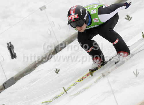 : Anders Jacobsen of Norway on inrun during trial round of day 1 of FIS ski jumping World Cup 2010-2011 finals in Planica, Slovenia. Individual competition on first day of FIS ski jumping World cup finals was held on Friday, 18th of March 2011, in Planica, Slovenia.
