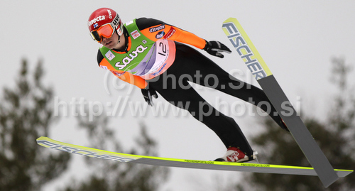 : Anssi Koivuranta of Finland soars through the air in first round of day 1 of FIS ski jumping World Cup 2010-2011 finals in Planica, Slovenia. Individual competition on first day of FIS ski jumping World cup finals was held on Friday, 18th of March 2011, in Planica, Slovenia.
