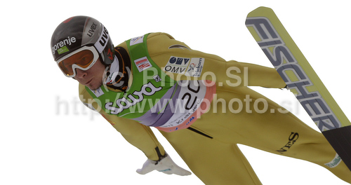 : Robert Kranjec of Slovenia soars through the air in first round of day 1 of FIS ski jumping World Cup 2010-2011 finals in Planica, Slovenia. Individual competition on first day of FIS ski jumping World cup finals was held on Friday, 18th of March 2011, in Planica, Slovenia.