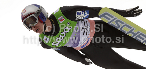: Gregor Schlierenzauer of Austria soars through the air in first round of day 1 of FIS ski jumping World Cup 2010-2011 finals in Planica, Slovenia. Individual competition on first day of FIS ski jumping World cup finals was held on Friday, 18th of March 2011, in Planica, Slovenia.