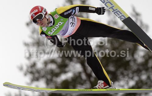 Planica ,Slovenia - 18.03.2011 : Matti Hautamaeki of Finland soars through the air in first round of day 1 of FIS ski jumping World Cup 2010-2011 finals in Planica, Slovenia. Individual competition on first day of FIS ski jumping World cup finals was held on Friday, 18th of March 2011, in Planica, Slovenia. Photo by: Primoz Jeroncic