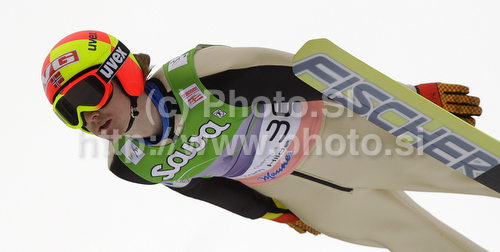 : Tom Hilde of Norway soars through the air in first round of day 1 of FIS ski jumping World Cup 2010-2011 finals in Planica, Slovenia. Individual competition on first day of FIS ski jumping World cup finals was held on Friday, 18th of March 2011, in Planica, Slovenia.