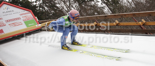 : Michael Neumayer of Germany on inrun during trial round of day 2 of FIS ski jumping World Cup 2010-2011 finals in Planica, Slovenia. Team competition on second day of FIS ski jumping World cup finals was held on Saturday, 19th of March 2011, in Planica, Slovenia.