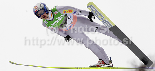 Planica ,Slovenia - 19.03.2011 : Adam Malysz of Poland soars through the air during first round of day 2 of FIS ski jumping World Cup 2010-2011 finals in Planica, Slovenia. Team competition on second day of FIS ski jumping World cup finals was held on Saturday, 19th of March 2011, in Planica, Slovenia. Photo by: Primoz Jeroncic