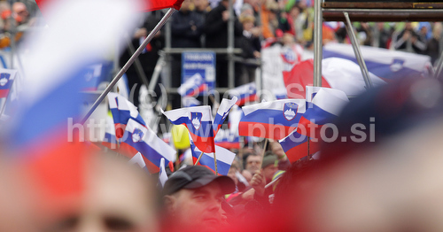 : Fans during competition of day 2 of FIS ski jumping World Cup 2010-2011 finals in Planica, Slovenia. Team competition on second day of FIS ski jumping World cup finals was held on Saturday, 19th of March 2011, in Planica, Slovenia.