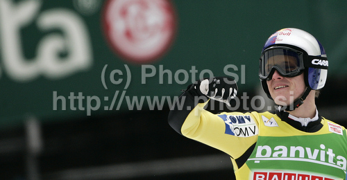 : Thomas Morgenstern of Austria reacts in outrun of second round of day 2 of FIS ski jumping World Cup 2010-2011 finals in Planica, Slovenia. Team competition on second day of FIS ski jumping World cup finals was held on Saturday, 19th of March 2011, in Planica, Slovenia.
