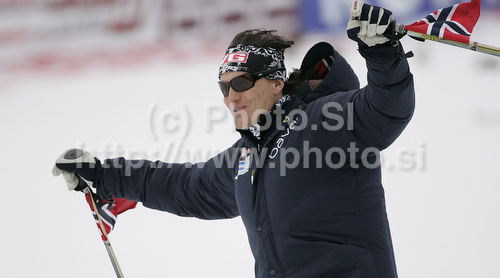 : Norwegian coach Mika Kojonkoski skiing down the landing after second round of day 2 of FIS ski jumping World Cup 2010-2011 finals in Planica, Slovenia. Team competition on second day of FIS ski jumping World cup finals was held on Saturday, 19th of March 2011, in Planica, Slovenia.