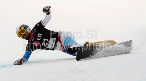 : Roland Haldi of Switzerland during parallel giant slalom of FIS Snowbord World Cup in Kreischberg, Austria. Parallel giant slalom of FIS Snowbord World Cupwas held in Kreischberg, Austria, on 6th of January 2010.