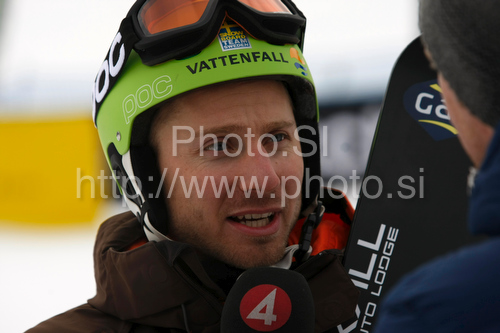 : Daniel Biveson of Sweden during parallel giant slalom of FIS Snowbord World Cup in Kreischberg, Austria. Parallel giant slalom of FIS Snowbord World Cupwas held in Kreischberg, Austria, on 6th of January 2010.