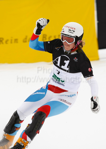 : Fraenzi Maegert-Kohli of Switzerland during parallel giant slalom of FIS Snowbord World Cup in Kreischberg, Austria. Parallel giant slalom of FIS Snowbord World Cupwas held in Kreischberg, Austria, on 6th of January 2010.