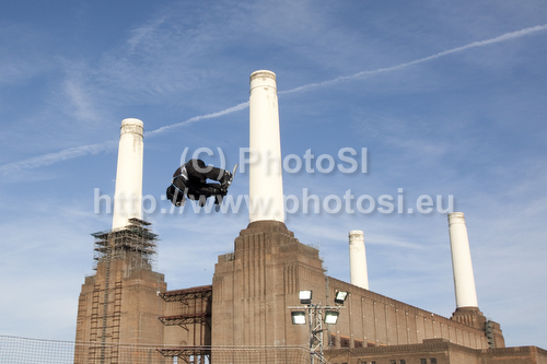 : A snowboarder takes part in a training session prior to competing in the FIS Snowboard Big Air World Cup at the London Freeze Festival at Battersea Power Station, London.