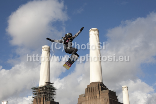 : Ziga ERLAC SLO takes to the air during the qualification round prior of the FIS Snowboard Big Air World Cup at the London Freeze Festival at Battersea Power Station, London.