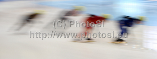 : Oliver Jean of Canada, Byeong Jun Kim of Korea, Jin Yang of China and Daisuke Uemura of Japan during World short track speed skating team World championships, which was held on 20th of March 2011 in Warszawa, Poland.
