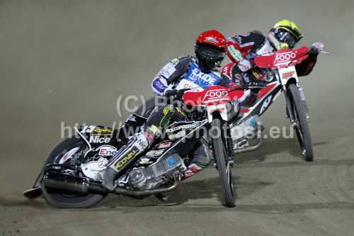 : Janusz Kolodziej (POL) and Chris Harris (GBR) during European GP Speedway Grand Prix 2011 race in Leszno, Poland. European GP Speedway Grand Prix was held on Saturday, 30th of April 2011 in Leszno, Poland.