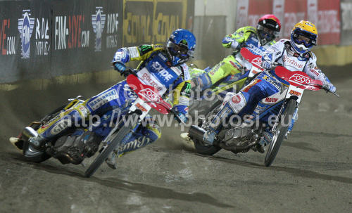 : Tomasz Gollob (POL), Nicki Pedersen (DEN) and Kenneth Bjerre (DEN) during European GP Speedway Grand Prix 2011 race in Leszno, Poland. European GP Speedway Grand Prix was held on Saturday, 30th of April 2011 in Leszno, Poland.
