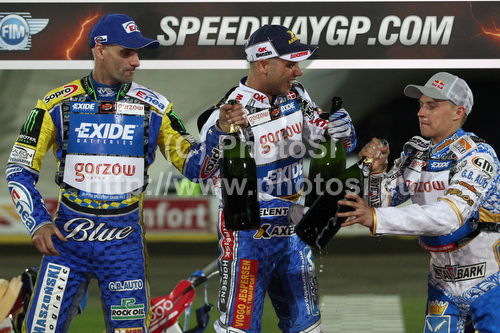 : Tomasz Gollob (POL), Nicki Pedersen (DEN) and Emil Sayfutdinov (RUS) during European GP Speedway Grand Prix 2011 race in Leszno, Poland. European GP Speedway Grand Prix was held on Saturday, 30th of April 2011 in Leszno, Poland.