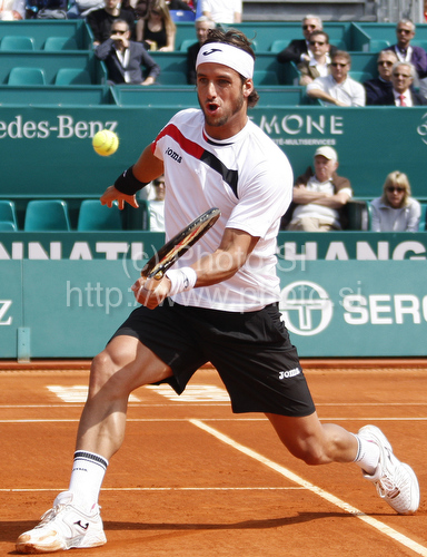 : Feliciano Lopez (ESP) in action during the first round match between Feliciano Lopez (ESP) and Tomas Berdych (CZE) at the ATP Monte Carlo Masters tennis tournament held in the Monte Carlo Country Club, Monaco, between from the 12th to the 18th April.