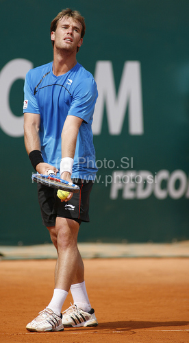 : D Gimeno-Traver (ESP) in action during the first round match between D Gimeno-Traver (ESP) and Richard Gasquet (FRA) at the ATP Monte Carlo Masters tennis tournament held in the Monte Carlo Country Club, Monaco, between from the 12th to the 18th April.