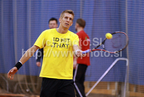 : Jarkko Nieminen of Finland during press conference and team presentation before tennis Davis Cup match between Slovenia and Finland. Press conference and team presentation was held in Tivoli Arena in Ljubljana, Slovenia, on Tuesday, 1st of March 2011.
