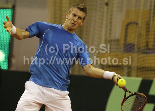 : Jarkko Nieminen of Finland during match of Davis Cup between Slovenia and Finland. Match between Jarkko Nieminen of Finland and Gregor Zemlja of Slovenia was held in Tivoli Arena in Ljubljana, Slovenia, on Friday, 4th of March 2011.