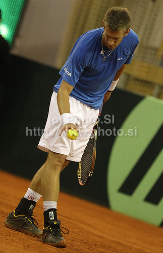 : Jarkko Nieminen of Finland during match of Davis Cup between Slovenia and Finland. Match between Jarkko Nieminen of Finland and Gregor Zemlja of Slovenia was held in Tivoli Arena in Ljubljana, Slovenia, on Friday, 4th of March 2011.