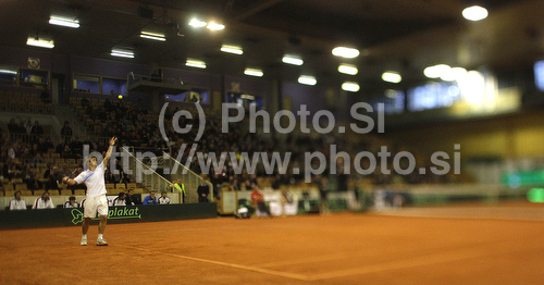 : Gregor Zemlja of Slovenia during match of Davis Cup between Slovenia and Finland. Match between Jarkko Nieminen of Finland and Gregor Zemlja of Slovenia was held in Tivoli Arena in Ljubljana, Slovenia, on Friday, 4th of March 2011.