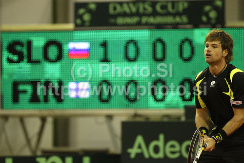 : Blaz Kavcic of Slovenia during match of Davis Cup between Slovenia and Finland. Match between Harri Heliovaara of Finland and Blaz Kavcic of Slovenia was held in Tivoli Arena in Ljubljana, Slovenia, on Friday, 4th of March 2011.