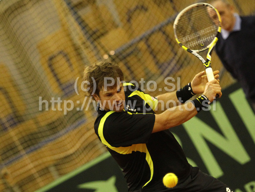Ljubljana ,Slovenia - 04.03.2011 : Blaz Kavcic of Slovenia during match of Davis Cup between Slovenia and Finland. Match between Harri Heliovaara of Finland and Blaz Kavcic of Slovenia was held in Tivoli Arena in Ljubljana, Slovenia, on Friday, 4th of March 2011. Photo by: Primoz Jeroncic