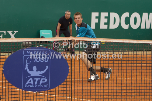 : 18/04/2012 Monte Carlo, Monaco.Jarkko Nieminen (FIN) in action during the second round match between Rafael Nadal (ESP) and Jarkko Nieminen (FIN) at the ATP Monte Carlo Masters tennis tournament held in the Monte Carlo Country Club, Monaco..