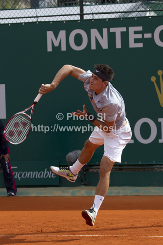 : Bernard Tomic (AUS) in action during the second round match between Bernard Tomic (AUS) and Alexandr Dolgopolov (UKR) at the ATP Monte Carlo Masters tennis tournament held in the Monte Carlo Country Club, Monaco..
