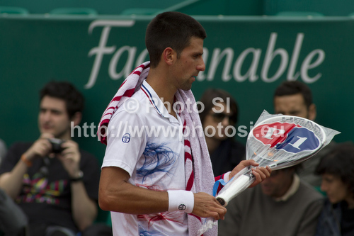 : Novak Djokovic (SRB) in action during the second round match between Novak Djokovic (SRB) and Andreas Seppi (ITA) at the ATP Monte Carlo Masters tennis tournament held in the Monte Carlo Country Club, Monaco..