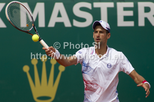 : Novak Djokovic (SRB) in action during the second round match between Novak Djokovic (SRB) and Andreas Seppi (ITA) at the ATP Monte Carlo Masters tennis tournament held in the Monte Carlo Country Club, Monaco..