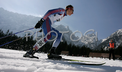 Tarvisio ,Italy - 17.03.2007 : Stanislav Volzhentsev of Russia skiing in Men 15+15km pursuit race of Under23 Nordic skiing World Championships in Tarvisio, Italy. Men 15+15km pursuit race of Junior Nordic skiing World Championships in Tarvisio, Italy was held on 17th of March 2007 in Fusine, Italy. Due warm weather and lack of snow, cross country skiing races of Junior Nordic skiing World Championships 2007 were moved from Tarvisio, Italy to Fusine, Italy. Photo by: Primoz Jeroncic