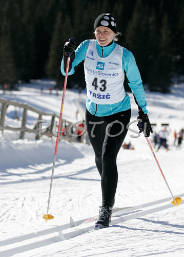 : Anne Jensen of Swedish embassy skiing in 16th Cross country skiing race of politicians and diplomats in Pokljuka, Slovenia. 16th Cross country skiing race of politicians and diplomats was held in Pokljuka, Slovenia, on 26th of January 2008.
