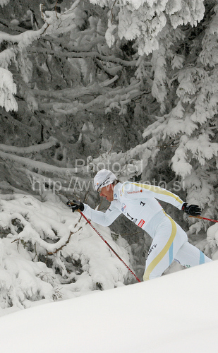 : Thobias Fredriksson of Sweden skiing during qualifications for Men sprint race of Viessmann Cross country skiing FIS World Cup 2009-10. Qualifications for Men sprint race of Viessmann Cross country skiing FIS World Cup were held in Rogla, Slovenia, on 19th of December 2009.