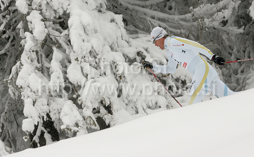 : Thobias Fredriksson of Sweden skiing during qualifications for Men sprint race of Viessmann Cross country skiing FIS World Cup 2009-10. Qualifications for Men sprint race of Viessmann Cross country skiing FIS World Cup were held in Rogla, Slovenia, on 19th of December 2009.