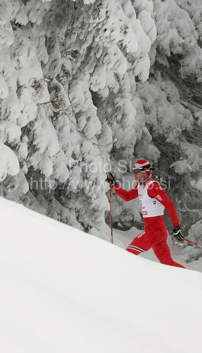 : Johan Kjoelstad of Norway skiing during qualifications for Men sprint race of Viessmann Cross country skiing FIS World Cup 2009-10. Qualifications for Men sprint race of Viessmann Cross country skiing FIS World Cup were held in Rogla, Slovenia, on 19th of December 2009.