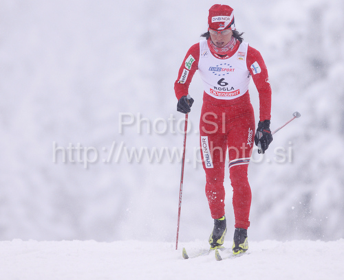 : Marit Bjoergen of Norway skiing during qualifications for Women sprint race of Viessmann Cross country skiing FIS World Cup 2009-10. Qualifications for Women sprint race of Viessmann Cross country skiing FIS World Cup were held in Rogla, Slovenia, on 19th of December 2009.