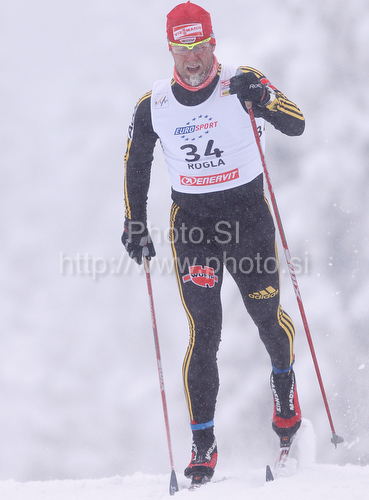 : Axel Teichmann of Germany skiing during qualifications for Men sprint race of Viessmann Cross country skiing FIS World Cup 2009-10. Qualifications for Men sprint race of Viessmann Cross country skiing FIS World Cup were held in Rogla, Slovenia, on 19th of December 2009.