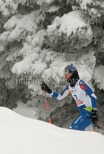 : Riikka Sarasoja of Finland skiing during qualifications for Women sprint race of Viessmann Cross country skiing FIS World Cup 2009-10. Qualifications for Women sprint race of Viessmann Cross country skiing FIS World Cup were held in Rogla, Slovenia, on 19th of December 2009.
