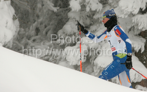 : Riikka Sarasoja of Finland skiing during qualifications for Women sprint race of Viessmann Cross country skiing FIS World Cup 2009-10. Qualifications for Women sprint race of Viessmann Cross country skiing FIS World Cup were held in Rogla, Slovenia, on 19th of December 2009.