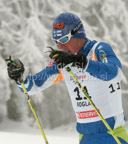 : Ville Nousiainen of Finland skiing during finals of Men sprint race of Viessmann Cross country skiing FIS World Cup 2009-10. Men sprint race of Viessmann Cross country skiing FIS World Cup were held in Rogla, Slovenia, on 19th of December 2009.