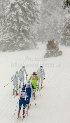 : skiing during finals of Women sprint race of Viessmann Cross country skiing FIS World Cup 2009-10. Women sprint race of Viessmann Cross country skiing FIS World Cup were held in Rogla, Slovenia, on 19th of December 2009.