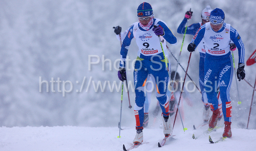 Rogla ,Slovenia - 19.12.2009 : Virpi Kuitunen of Finland (L) and Evgenia Shapovalova of Russia (R)skiing during finals of Women sprint race of Viessmann Cross country skiing FIS World Cup 2009-10. Women sprint race of Viessmann Cross country skiing FIS World Cup were held in Rogla, Slovenia, on 19th of December 2009. Photo by: Leena Jeroncic