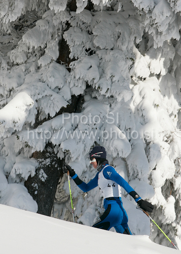 : Aurore Cuinet of France skiing in Women 15km classic mass start race of Viessmann Cross country skiing FIS World Cup 2009-10. Women 15km classic mass start race of Viessmann Cross country skiing FIS World Cup were held in Rogla, Slovenia, on 20th of December 2009.