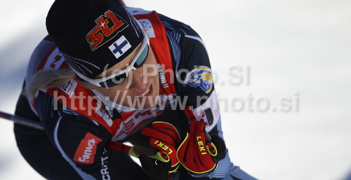: Riitta-Liisa Roponen of Finland skiing during qualifications for women sprint race of Dobiacco-Toblach stage of Tour de Ski 2011. Sprint race of Tour de ski was held on Wednesday, 5th of January 2011 in Dobiacco-Toblach, Italy.